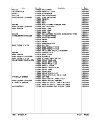 Kubota B8200 Hst Dp Tractor Parts Catalogue Manual Pdf